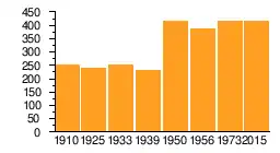 | Jahr | 1910 | 1925 | 1933 | 1939 | 1950 | 1956 | 1973 | 2015 |
