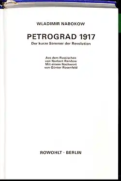 - Petrograd 1917. Der kurze Sommer der Revolution. Aus dem Russischen von Norbert Randow, Vorwort von Vladimir Nabokov, Nachwort und Glossar von Günter Rosenfeld. Rowohlt, Berlin 1992, ISBN 3-87134-049-9