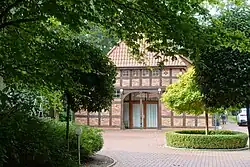 Das giebelständige Gebäude als Zweiständer-Hallenhaus in Fachwerk mit Steinausfachungen, ziegelgedecktem Krüppelwalmdach, Niedersachsengiebel mit Uhlenloch und später verglaster Grooter Door mit Korbbogen wurde 1780 (Inschrift) gebaut.[1] Das Haus wurde zum Wohnhaus umgebaut.