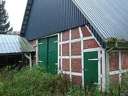 Das eingeschossige giebelständige Gebäude als Zweiständer-Hallenhaus in Fachwerk mit Steinausfachungen, Krüppelwalmdach und im Wirtschaftsgiebel mit Satteldach und regionaltypischer senkrechter Verbretterung im Giebeldreieck sowie Grooter Door mit geradem Abschluss wurde im 19. Jahrhundert gebaut.[1]