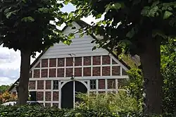 Das eingeschossige giebelständige Wohn- und Wirtschaftsgebäude als Zweiständer-Hallenhaus mit Unterrähm in gleichmäßigem Fachwerk mit Steinausfachungen und mit reetgedecktem Satteldach wurde 1810 (Inschrift) gebaut und im Kern wohl 1760. Der Wirtschaftsgiebel mit Uhlenloch und der korbbogenförmigen Grooten Door wurde im oberen Dreieck regionaltypisch horizontal verbrettert. Nord- und Südtraufe des Wirtschaftsteils wurde um 1900, der Wohngiebel nach 1945 massiv erneuert; der Giebel erhielt im oberen Dreieck eine Reetdeckung. In der zweiten Hälfte des 19. Jahrhunderts diente das Haus auch als Schule von Sethlerhemm.[1]