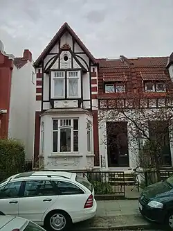 In der kurzen Lortzingstraße von 1903, benannt nach dem Komponisten Albert Lortzing, stehen in der Nachbarschaft weitere Giebelhäuser wie Nr. 1E und 1F, viele davon als Bremer Häuser. Ansonsten wurden zwei- bis auch viergeschossige Wohnhäuser erstellt. Die Eckhäuser Lortzingstraße/Schwachhauser Heerstraße 78 (Villa Gross bzw. Bremer Medienhaus) und 78B sowie Lortzingstraße 6 sind dabei bemerkenswert.