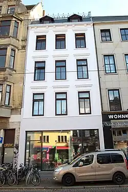 - Nr. 90: von um 1905 mit zwei halbrunden Erker im Reformstil[6]