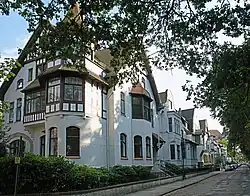 - in Nr. 15 der Kaufmann, Kunstsammler und Mäzen Leopold Biermann, der sein Haus 1907 durch einen Wintergarten nach Plänen von Carl Eeg und Eduard Runge erweiterte; 1909 baute Rudolf Alexander Schröder innen das Haus um; das Haus ist zugleich als Einzeldenkmal geschützt; die Bibliothek befindet sich heute (2017) im Neuen Rathaus, 2. OG, Ostseite, im sog. Rudolf-Alexander-Schröder-Zimmer;