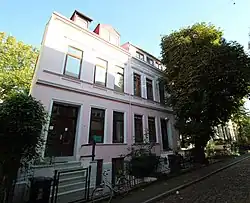 Die zweigeschossigen, dreiachsigen, Reihenhäuser mit verputzten, klassizistischen Fassadenelementen (Fensterumrahmungen Schmuckfries) und Satteldächern stammen aus der Epoche des Historismus. Die Endhäuser mit seitlichen Erkern wichen späteren Neubauten.