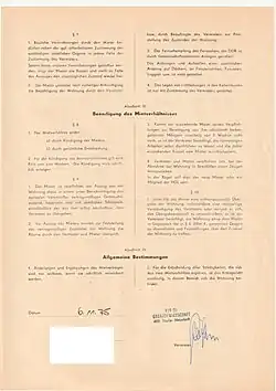 - ↑ § 123 Abs. 3 Zivilgesetzbuch der Deutschen Demokratischen Republik vom 19. Juni 1975 im Gesetzblatt der DDR, Teil I Nr. 27 vom 4. Juli 1975, S. 465ff., Digitalisat, Paragraph auf S. 480.
