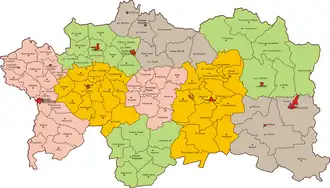 Powiat Prużana bestehend aus den Städten Prużana, Bereza Kartuska und Szereszów sowie den Gminas: