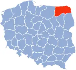 Politische Karte Polens, Woiwodschaft Suwałki rot hervorgehoben