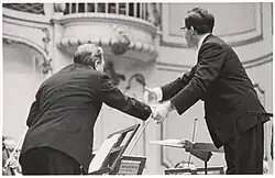 Unstimmigkeiten führten 1970 zu Sawallischs Demission, und nach einer zehnjährigen Pause kehrte er 1980 im Rahmen einer Europa-Tournee als Gastdirigent zurück. Seitdem blieb er einer der ständigen Dirigenten – bis zum 24. Juni 2005, seinem letzten, bereits von schweren gesundheitlichen Problemen[15] überschatteten Konzert in Bad Kissingen, mit Werken von Kodály, Haydn und Brahms.[16]