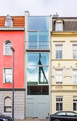 - ↑ BauNetz: Platz ist in der kleinsten Lücke - Wolfgang Zehs schmales Haus in Köln. 29. August 2019, abgerufen am 25. Juli 2023.