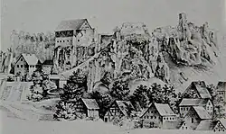 Von der mittelalterlichen Bausubstanz des Ortes ist außer der Burgruine nichts erhalten geblieben. Das bayerische Urkataster zeigt in den 1810er Jahren 19 dicht im Tal gedrängte Gehöfte[4] mit teils stattlichen Wirtschaftsflächen. Die Anwesen 15 und 18 dürften eine Mühle und ein Schmiedehammer gewesen sein, die die Wasserkraft der Trubach nutzten, wie die jeweiligen Mühlgräben und Gebäudeensemble erkennen lassen.[4] Beide sind abgegangen, so dass an historischer Bausubstanz neben der Burgruine und den stattlichen Mauerresten ihrer hochmittelalterlichen Vorgängerbauten mit einem Felsenkeller nur noch wenige Baudenkmale erhalten sind: