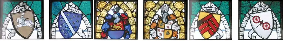 Besonders prächtig wurde der Salon im ersten Obergeschoss ausgebaut. Hier sind die Wappenfenster hervorzuheben, welche im Folgenden kurz beschrieben werden sollen.