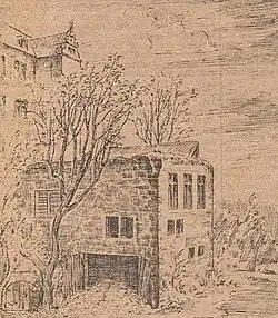 Im 14. Jahrhundert trug das Grundstück noch kein Wohnhaus, sondern nur Wirtschaftsgebäude. Diese waren freies Eigentum der mächtigen Familie von Bicken und wurden in einer Urkunde von 1381 als oberhalb des Kerners gelegen genannt.[1] Dieser Hofbezirk kam noch im gleichen Jahrhundert an die Ritterfamilie von Hose aus Ockershausen[2], deren Burgsitz unmittelbar darüber lag – dort wo sich das alte Landgericht, heute die Religionskundliche Sammlung der Universität Marburg, befindet. Der Rittersitz wurde im 15. und 16. Jahrhundert in Dokumenten als Hosenhof oder als steinerne Kemenate am Burgberg bezeichnet und bestand aus drei festen Häusern und drei Gärten. Zwei von den letzteren lagen oberhalb der Steinhäuser jenseits der heutigen Landgraf-Philipp-Straße, der dritte unterhalb, da, wo jetzt die Wolfsburg steht.