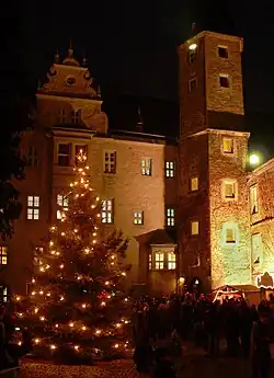 In den Innenwinkeln des Hofraumes liegen drei weitere Turmbauten, die als Treppentürme die einzelnen Geschosse miteinander verbinden. Dies sind der Hausmannsturm, der mit rund 30 m der höchste Turm ist, der Uhlenturm und der sechseckige Wendelstein mit Wendeltreppe. Sie entstanden im 16. Jahrhundert während der Wandlung von der Burg zum Schloss.