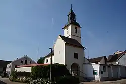 - Die katholische Kirche St. Quirin ist eine Wehrkirche, dessen Chorturm im Untergeschoss romanischen Ursprungs ist und im Jahr 1687 durch den Graubündner Baumeister Jakob Engel einen barocken Aufbau erhielt.[5][6]