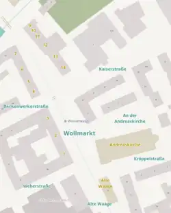 | Wollmarkt ante valvam beati Andree (1282) Marketstrate (1395) vor dem Neustadttore (1780) | |