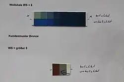 Um realistische Ergebnisse zu erhalten, erfolgt die Bestimmung der Lichtechtheitsstufen jahreszeitenabhängig.[3]