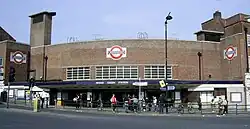 Wie alle Stationen im nördlichen Teil der Piccadilly Line ist auch diese von Charles Holden entworfen worden. Das Stationsgebäude ist ein gut erhaltenes Beispiel des modernistischen Stils für Bauwerke entlang der Piccadilly Line. Dominierendes Baumaterial sind rote Ziegelsteine. Aufgrund der Lage an der Ecke einer Straßenkreuzung ist die Hauptfassade gekrümmt. Diese wird von zwei Ventilationsschächten mit Läden flankiert. Obergaden lassen das Tageslicht in die elliptisch geformte Schalterhalle einfallen. Seit 2011 steht das Gebäude unter Denkmalschutz (Grade II).[2]