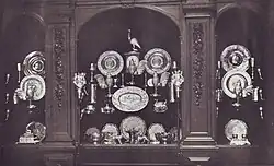 Das mit dem wohlduftenden Zedernholz des Virginischen Wacholders – an heißen Tagen kann man das Holz noch riechen – getäfelte Gesellschaftszimmer des Gildehauses (ca. 1902)