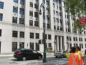 Die Worth Street durchläuft eine Ansammlung von Regierungsstellen und Gerichtsgebäuden, die um den Foley Square angesiedelt sind. Im Haus 125 Worth Street sind die Hauptverwaltungen der New York City Health and Hospitals Corporation[2], des Department of Health and Mental Hygiene und des Department of Sanitation[3] untergebracht. Darüber hinaus sind hier die Gerichtsgebäude des New York Supreme Court[4] zu nennen (60 Centre Street, 80 Centre Street (das Louis Lefkowitz Building)) sowie das Daniel Patrick Moynihan Gerichtsgebäude (United States District Court for the Southern District of New York[5]) an der 500 Pearl Street, deren Eingänge allesamt an der Worth Street liegen.