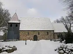 - Romanische St.-Lucia-Kirche wurde um 1200 einschiffig aus Feldsteinen erbaut, der hölzerne Westturm ist jüngeren Datums. Das Kirchenschiff und der eingezogene Chor haben jeweils drei Rundbogenfenster. Der Altaraufsatz stammt von 1669, das Mittelbild von 1894, der Kelch aus der Mitte des 15. Jahrhunderts und die drei Glocken von um 1300.