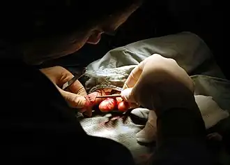 Eine Wundheilungsstörung liegt vor, wenn der physiologische Ablauf einer Wundheilung verhindert wird. Dies führt entweder zum spontanen Aufbrechen der Wunde oder macht eine chirurgische Wundrevision erforderlich.[14] Nicht nur septische (infektiöse) Wundheilungsstörungen sind problematisch. Auch Wunden bei Hämophilie (Bluterkrankheit) neigen zu gefährlichen Blutungen und erschwerter Wundheilung infolge Gerinnungsstörung durch fehlende oder insuffiziente Gerinnungsfaktoren im Blut.