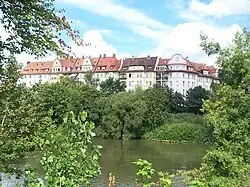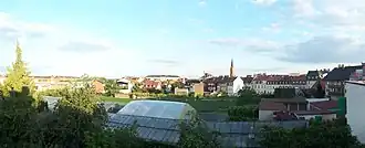 ![]() Panorama mit (von links) Koppenhofkaserne, Wunderburger Schule, Brauerei, Pfarrkirche. Gärtnerland im Vordergrund (2006)