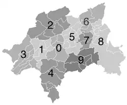 Das Stadtgebiet ist seit 1979 in zehn Stadtbezirke eingeteilt.