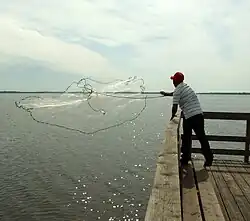 Das Wurfnetz ist ein kleines Fischernetz zum Fangen von Fischen. Das kreisrunde Netz, an dessen Rändern sich Gewichte befinden, wird so von einem Menschen geworfen, dass es ins Wasser fällt und geöffnet auf den Boden sinkt. Dort wird durch Schnüre, deren Ende der Werfer in den Händen behält, die untere Öffnung zusammengezogen und das Netz dann mit den darin befindlichen Fischen eingeholt.[1]