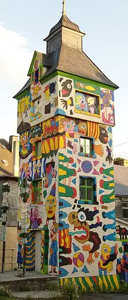 Der Leipziger Künstler Michael Fischer-Art gestaltete den alten Trafo-Turm am Markt neu. Die Initiative kam von Bärbel Müller, die eine Galerie am Markt direkt neben dem Turm betreibt. Das Projekt wurde durch Spenden finanziert. Im August 2008 wurde das Kunstwerk eingeweiht.[12]