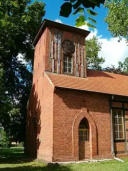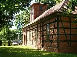 Den Mittelpunkt des Dorfes bildet die aus Fachwerk und Lehm als einfache einschiffige Hallenkirche ohne Turm errichtete Dorfkirche. Der heutige Kirchneubau aus unverputztem Fachwerk mit hohen rechteckigen Fenstern und Turm entstand um 1830 und 1882 erhielt die Kirche eine Glocke.