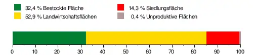 Das Einzugsgebiet besteht zu 32,4 % aus bestockter Fläche, zu 52,9 % aus Landwirtschaftsfläche, zu 14,3 % aus Siedlungsfläche und zu 0,4 % aus unproduktiven Flächen.