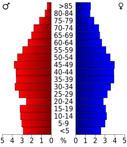 Auf das gesamte County bezogen setzte sich die Bevölkerung zusammen aus 21,8 Prozent Einwohnern unter 18 Jahren, 7,6 Prozent zwischen 18 und 24 Jahren, 28,9 Prozent zwischen 25 und 44 Jahren, 25,9 Prozent zwischen 45 und 64 Jahren und 15,8 Prozent waren 65 Jahre alt oder darüber. Das Durchschnittsalter betrug 39 Jahre. Auf 100 weibliche Personen kamen 91,4 männliche Personen. Auf 100 Frauen im Alter von 18 Jahren oder darüber kamen statistisch 88,3 Männer.