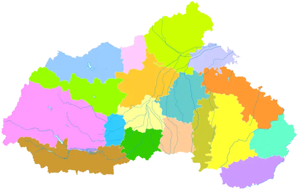 | Gliederung | 4 Stadtbezirke, 12 Kreise und 2 kreisfreie Städte | ||