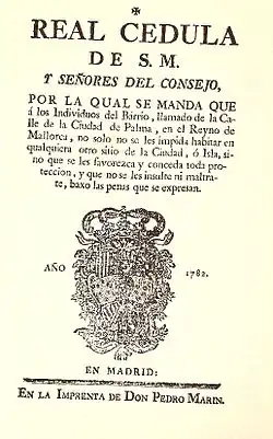 Schließlich war der König zugunsten der xuetas geneigt, und am 29. November 1782 wurde die Real Cédula unterschrieben, welche die Bewegungsfreiheit und freie Wohnsitzwahl, den Abriss jedes architektonischen Elementes, das der räumlichen Trennung des Judenviertels Segell diente, und das Verbot von Beschimpfungen, Misshandlungen und den Gebrauch von verleumderischen Ausdrücken verordnete. Auf etwas zurückhaltende Weise zeigte sich der Monarch gewillt, ihnen freie Berufswahl und den Eintritt in die Marine und das Militär zu zugestehen. Allerdings sollte diese Verfügung erst umgesetzt werden, wenn sich die Gemüter nach einiger Zeit beruhigt hätten.
