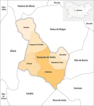 Die Gemeinde Xunqueira de Ambía ist in sechs Parroquias gegliedert: