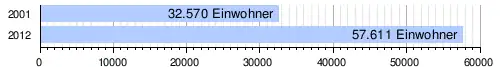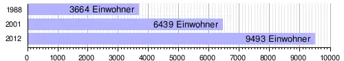 Im Hauptort lebten bei der Volkszählung 2012 9493 Einwohner in 1255 Haushalten,[1] bei der Volkszählung 2001 6439 in 1006 Haushalten[5] und bei der Volkszählung 1988 3664 in 654 Haushalten.[6]