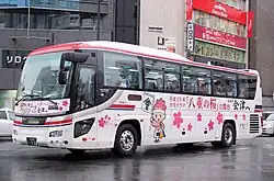 Ein Bus mit Werbung zur Fernsehserie Yae no Sakura , 2013