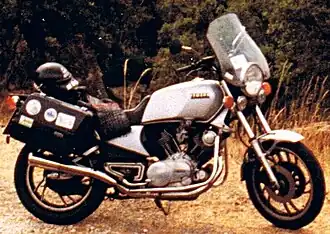 ![]() Yamaha TR 1 (1981), mit Krauser-Koffersatz, Sturzbügel und Windschutzscheibe nachgerüstet | |