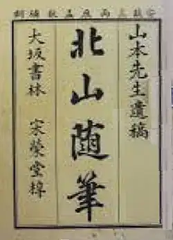 Yamamoto Hokuzan wurde bekannt mit seiner Schrift „Kōkyō Shūran“ (孝経集覧), die er im Alter von 21 Jahren verfasste. Darin setzte er sich mit dem chinesischen Klassiker „Xiào jīng“ auseinander, der sich mit der von Konfuzius verfügten Kinderliebe befasst. Mit 28 Jahren publizierte er „Sakubun Shikō“ (作文志彀), mit 31 Jahren „Sakushi Shikō“ (作詩志彀) und mit 56 Jahren „Kōkyōrō Shiwa“ (孝経樓詩話) in 2 Bänden.