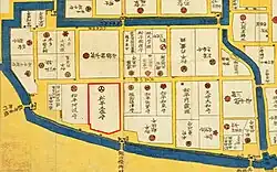 - ↑ Ausschnitt aus der Stadtteilkarte Kandabashi-nai Daimyō-kōji Uchi-sakurada von ca. 1850.
