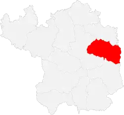 - Großgemeinden Heijiabao (黑家堡镇), Zhengzhuang (郑庄镇), Zhangjiatan (张家滩镇), Jiaokou (交口镇), Leichi (雷赤镇), Luozishan (罗子山镇), Angou (安沟镇)[4]
