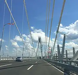 | Konstruktion | kombinierte Hänge- und Schrägseilbrücke | |