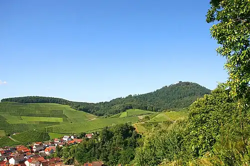 Das Landschaftsbild wird überwiegend von Weinbergen geprägt, die Oberhänge und Kuppen sind bewaldet.