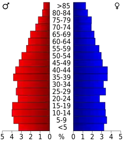 25,8 Prozent der Bevölkerung waren unter 18 Jahre alt, 8,9 Prozent zwischen 18 und 24, 28,3 Prozent zwischen 25 und 44, 22,0 Prozent zwischen 45 und 64 und 15,0 Prozent waren 65 Jahre oder älter. Das Durchschnittsalter betrug 36 Jahre. Auf 100 weibliche kamen statistisch 99,5 männliche Personen und auf 100 Frauen im Alter von 18 Jahren und darüber kamen durchschnittlich 96,3 Männer.