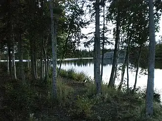 Blick auf den Yellowknife River etwa 10 Kilometer vor der Mündung | ||