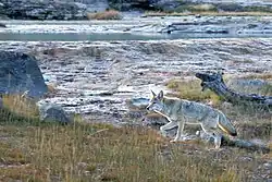 Die Wölfe der Yellowstone-Gegend wurden jahrelang gejagt und in den 1930er Jahren ganz ausgerottet. Als direkte Folge geriet das natürliche Gleichgewicht der Tierwelt durcheinander. Deshalb wurden 1995 erfolgreich 14 kanadische Wölfe angesiedelt und unter Schutz gestellt. Mittlerweile haben sich die Yellowstone-Wölfe mit eingewanderten Wölfen aus Kanada vermischt und ihre Population hat sich auf knapp 100 Tiere innerhalb des Parks (Ende 2009)[36] und auf 1645 Tiere (Ende 2008) im Gebiet Idaho/Montana/Wyoming erhöht.[37] Am 28. März 2008 sollten die Yellowstone-Wölfe deshalb von der Bundes-Liste der gefährdeten Arten entfernt werden. Der Schutz der Wolf-Population wäre vom US Fish & Wildlife Service an die drei betroffenen US-Bundesstaaten Wyoming, Montana und Idaho übergegangen.[38] Das Vorhaben wurde im Juli 2008 nach Klagen einer Koalition von Naturschutzverbänden durch ein Bundesgericht gestoppt, weil die Maßnahmen in Wyoming das vom Bund vorgeschriebene Schutzniveau verfehlen und der Erhalt der Population dadurch nicht garantiert wird.[39] Im August 2010 wurde der Klage stattgegeben mit der Begründung, die Wolf-Population in der Yellowstone-Gegend sei als Gesamtes zu betrachten.[40] Im Mai 2011 wurde die Art schließlich in Idaho und Montana in die Zuständigkeit der Staaten übergeben und nachdem Wyoming ein ausreichendes Schutzgesetz erlassen hatte, wurde der Wolf zum Oktober 2012 auch dort aus dem Schutz des Bundes entlassen.[41]