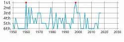 1960 wurde Mihara Osamu, der zuvor die Nishitetsu Lions zu drei Meisterschaften in Folge geführt hatte, Manager der Whales: Durch eine deutliche Verbesserung bei den Pitchern (2.32 ERA nach 3.47 im Vorjahr) beendete die Mannschaft die Saison als Erster (70 Siege, 56 Niederlagen, 4 Unentschieden) und konnte anschließend auch die Nippon Series gegen die Daimai Orions gewinnen. Mihara blieb bis 1967, kam aber über zwei zweite Plätze nicht hinaus.
