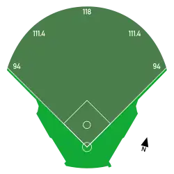 | Spielfläche | Right Field – 94 m (308,4 ft) Left Field – 94 m (308,4 ft) Right Center – 111,4 m (366 ft) Left Center – 111,4 m (366 ft) Center Field – 118 m (387,1 ft)