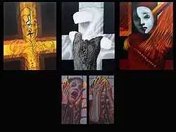 Yolanda Feinduras Ausstellung Letzte Worte zum Trauma[29] wurde im Jahr 2010 in der Galerie des Atelierhofs durch Dr. Gabriele Treu vom Notruf für vergewaltigte Frauen und Mädchen (Bremen) eröffnet[30] und zeigte Gemälde aus den Jahren 1997 bis 2010, wie zum Beispiel den fünfteiligen Altar Trauma, der die Biografie des in der Irakoffensive der US-Armee im Jahr 2003 brandverletzten und beidseits armamputierten 12-jährigen Kriegswaisen Ali Ismail Abbas als ikonografischen Ausgangspunkt nahm und den Begriff der Traumatisierung allgemeingültig erweiterte, wie in dem Diptychon Innen und Außen.[31]